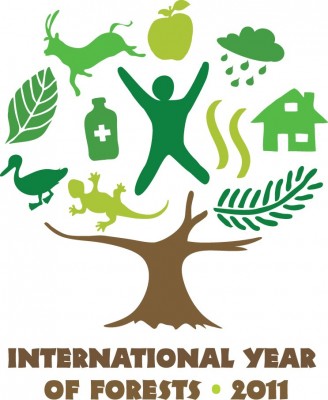 Did you know the UN has declared 2011 the International Year of the Forest! No? Well don’t worry. Neither do most other people. So what does this mean for the average Canadian? Apparently the Year of the Forest includes lots of cool stuff like a film festival, a website, and the coolest part of all, THE SWEETEST LOGO EVER!!! It looks like a stump with some sort of magic man standing on it. This man is obviously magic because he can make plants, animals, medicine, squiggly lines and houses float above his head. It also seems like he can control the weather, or at least rain clouds.